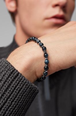 Boss Tiger Eye Beaded Cuff With Polished Metal Spacers