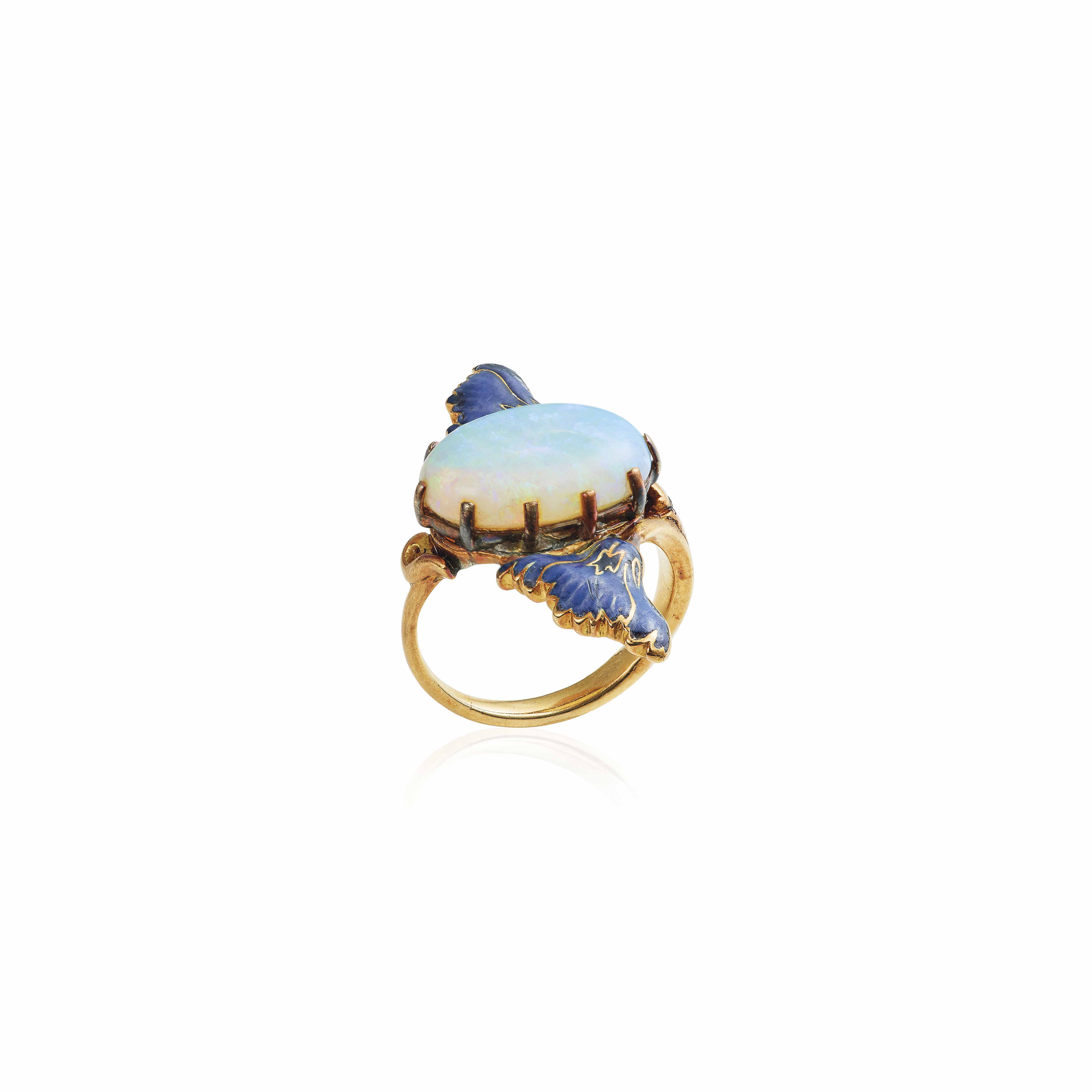 An Art Nouveau Opal And Enamel Ring By Rene Lalique Jewelry