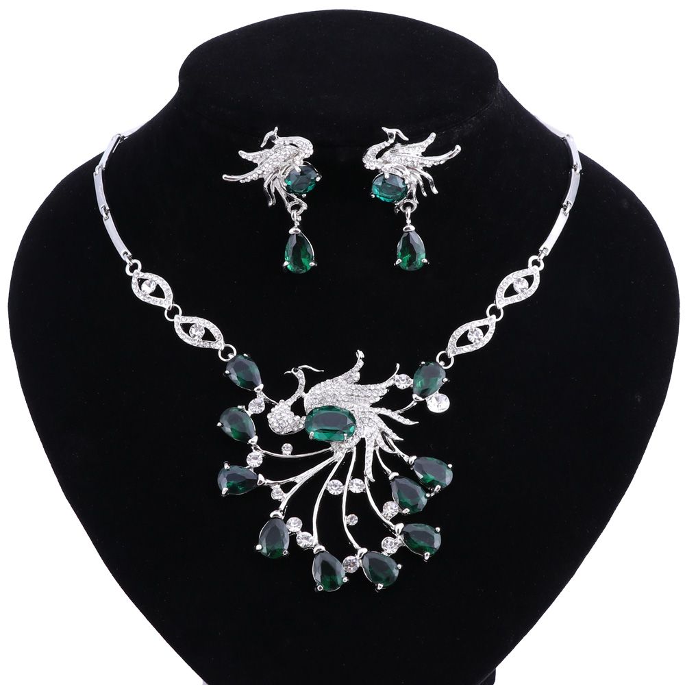Grosshandel Roter Stein Weiss Kristall Schmuck Set Phoenix Hochzeit