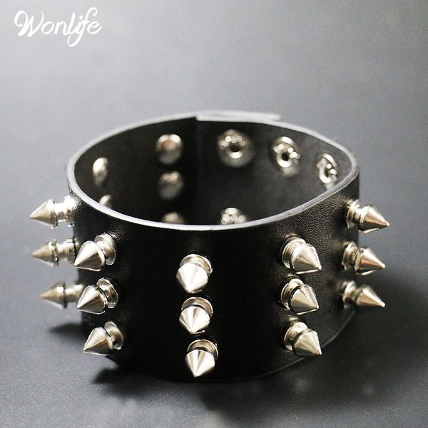 Uhren Schmuck 3 Row 1 2 Silver Spike Quality Black Leather