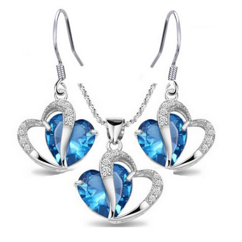 Schmuck Set Kette Ohrringe Herz Blau Mit Swarovski Elements 18 Kgp