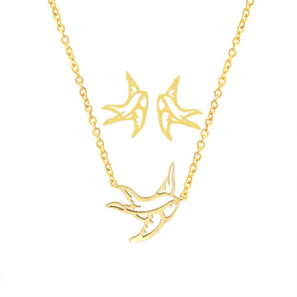 2019 Origami Swallow Stud Earrings Pendant Necklace Men Women Gold