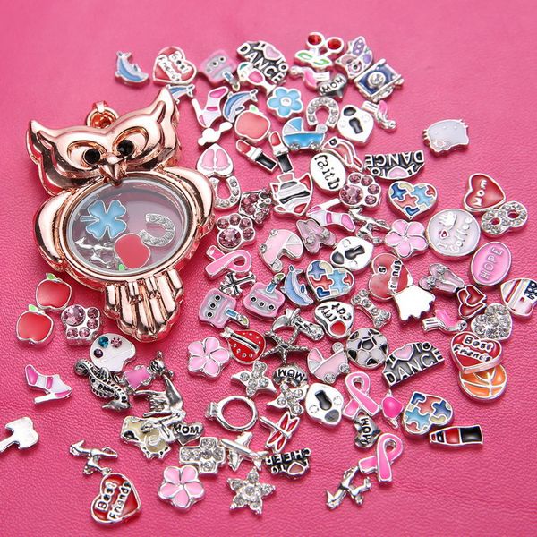 Grosshandel Diy Owl Alloy Schwimmdock Charme Medaillon Runde Glas