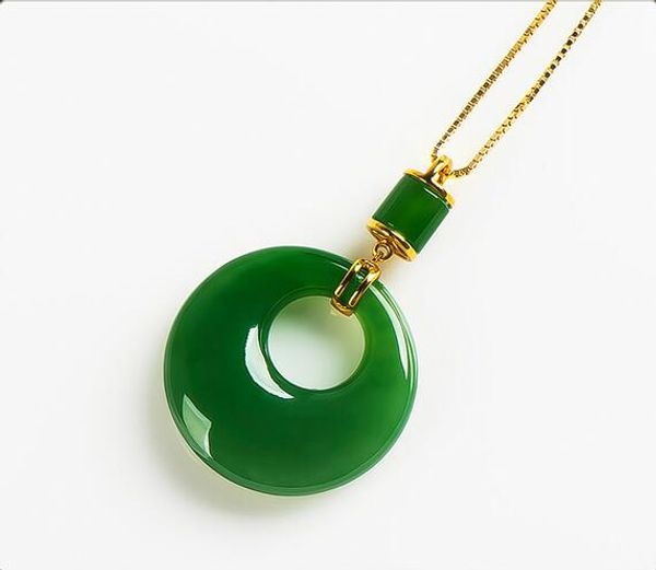 Qiulv Grun Kugelperle Jade Anhanger Smaragdstein Halskette 18k