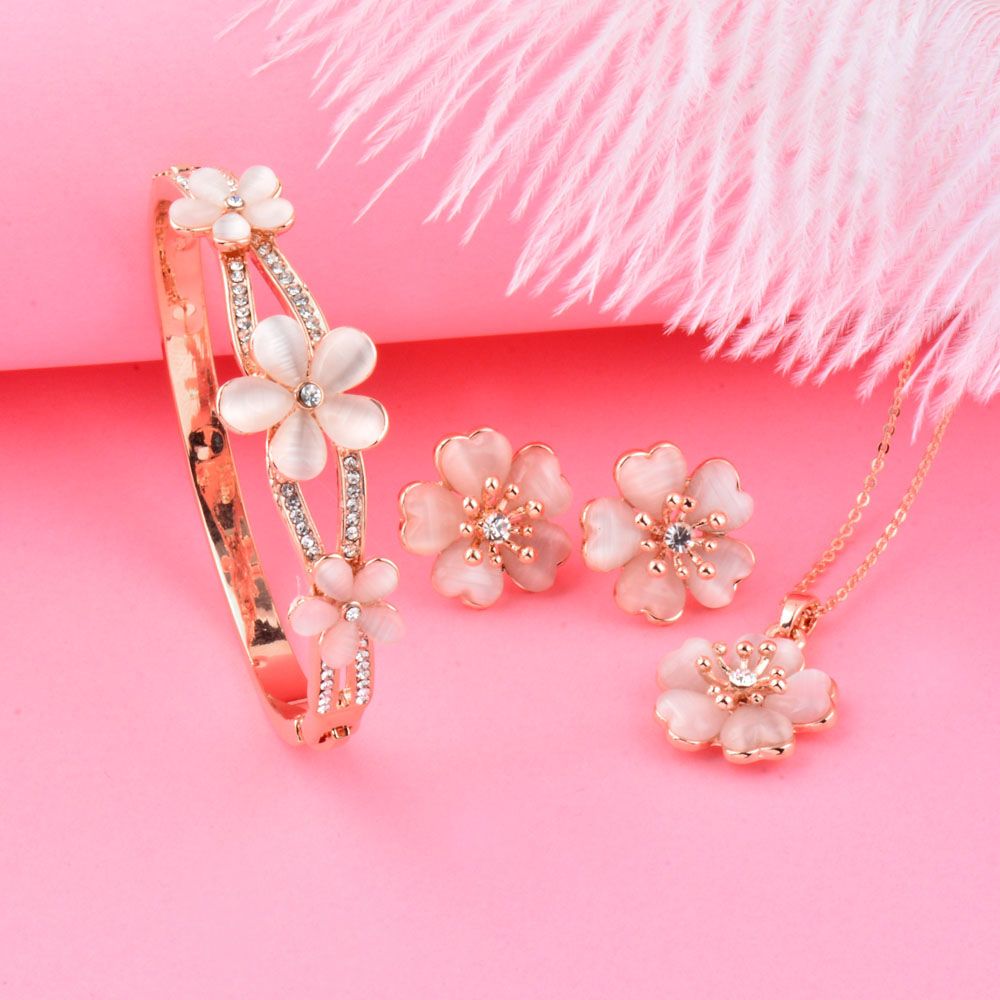 Grosshandel Trendy Blume Brautschmuck Sets Rose Gold Farbe Opal