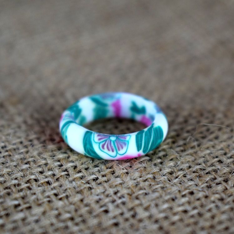 Blue Mauritius Handmade Millefleur Polymer Clay Ring From Germany