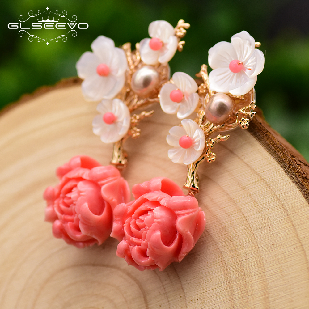 Kaufen Sie Im Grosshandel Rosa Korallen Ohrringe Sterling Silber