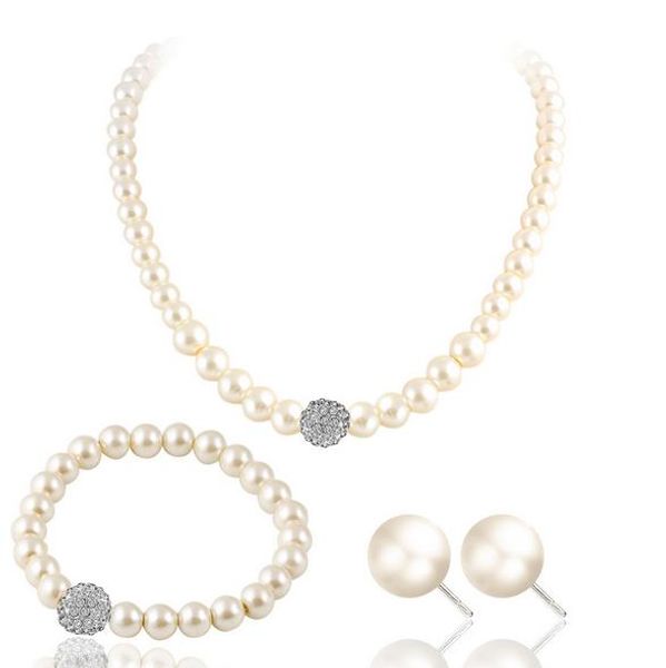 Set Collier Halskette Perlen Strass Brautschmuck Hochzeit Braut